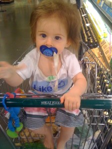 Yesterday we took our weekly trip to Wholefoods. But this was no normal trip, no, this was also Darwin’s first time sitting in the seat of a shopping trolley and boy did he love it!!!! He was looking all around him, trying to grab food, he was very excited to be at almost the same height as me looking down and smiling at all the other kids that were grumpy in their strollers! He lasted a good 40 minutes before the novelty wore off and he needed to be carried, but by that time we were at the checkout. Darwin did his usual thing of wanting to play with the credit card (8 months and he wants a credit card already)! He had a slight outburst when it was taken away from him, as would Mummy if Daddy took her credit card away from her! I was also pretty relieved to find that the stroller wasn’t stolen from the stroller park! All in all a fun trip to the grocery store!