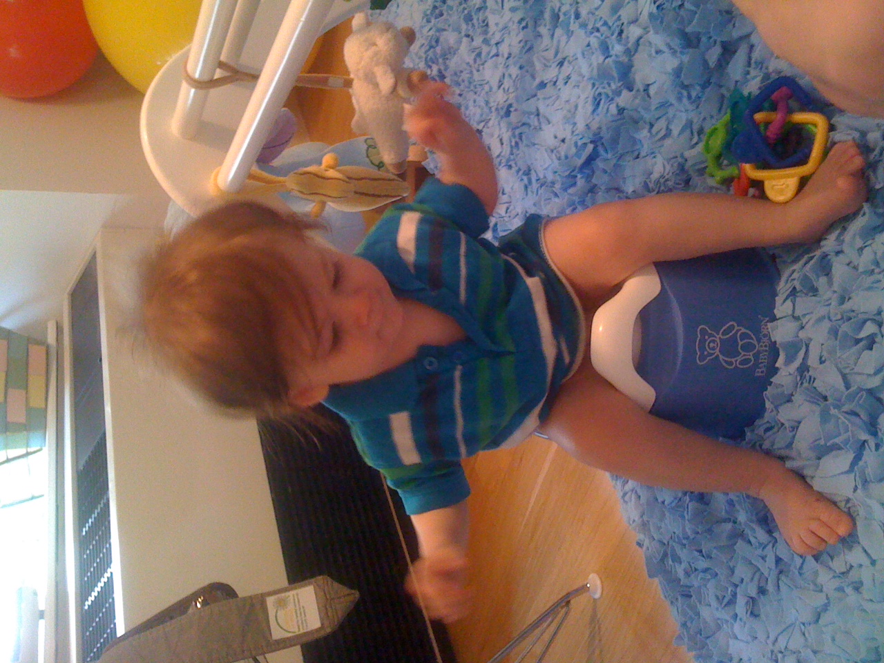 He has for weeks, been trying all sorts of interesting techniques to get himself from A to B, but he just couldn’t get the coordination quite right. But he is a very determined little boy and keeps on going until he gets what he wants (which is everything in sight)! I came into the living room to find him eating the FT from the coffee table this morning! So for now, the only way to describe his technique is a wounded solider! He’s dragging himself across the floor and getting into lots of mischief! Photos to follow!